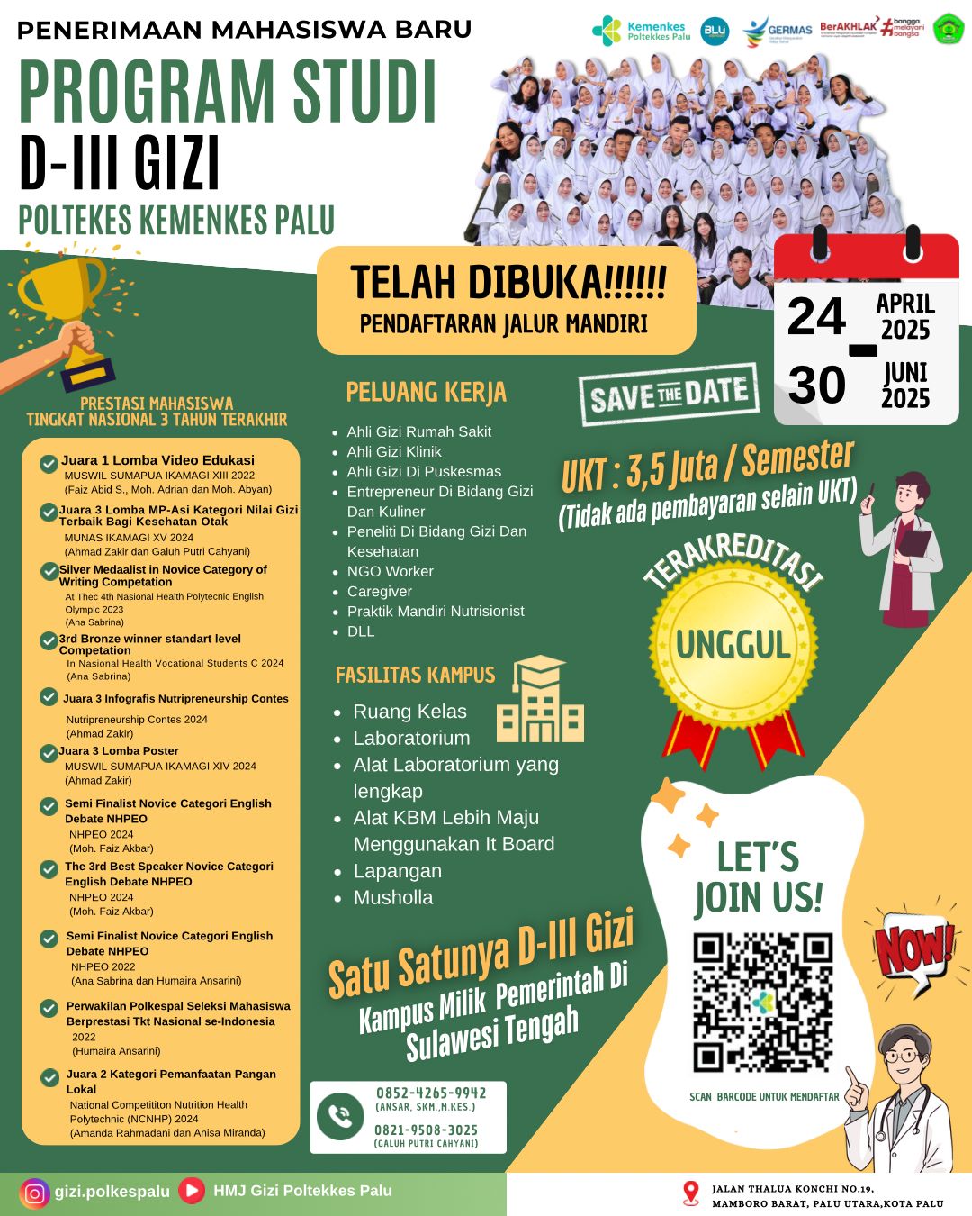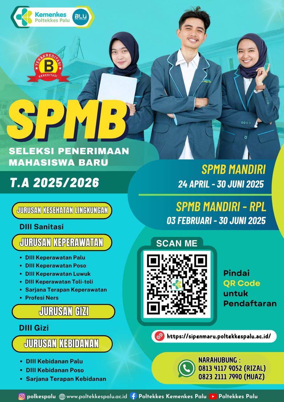 Poltekkes Kemenkes Palu merupakan salah satu perguruan tinggi negeri (PTN) yang menghasilkan tenaga kesehatan melalui proses yang dimulai dari seleksi calon mahasiswa atau yang dikenal dengan SPMB (Seleksi Penerimaan Mahasiswa Baru) yang dilaksanakan melalui rangkaian seleksi dan persyaratan yang harus dipenuhi oleh calon mahasiswa. Kegiatan seleksi dilakukan bukan hanya untuk mengukur kemampuan secara umum, tetapi lebih menitikberatkan pada penjaringan calon mahasiswa dengan kemampuan akademik yang baik.