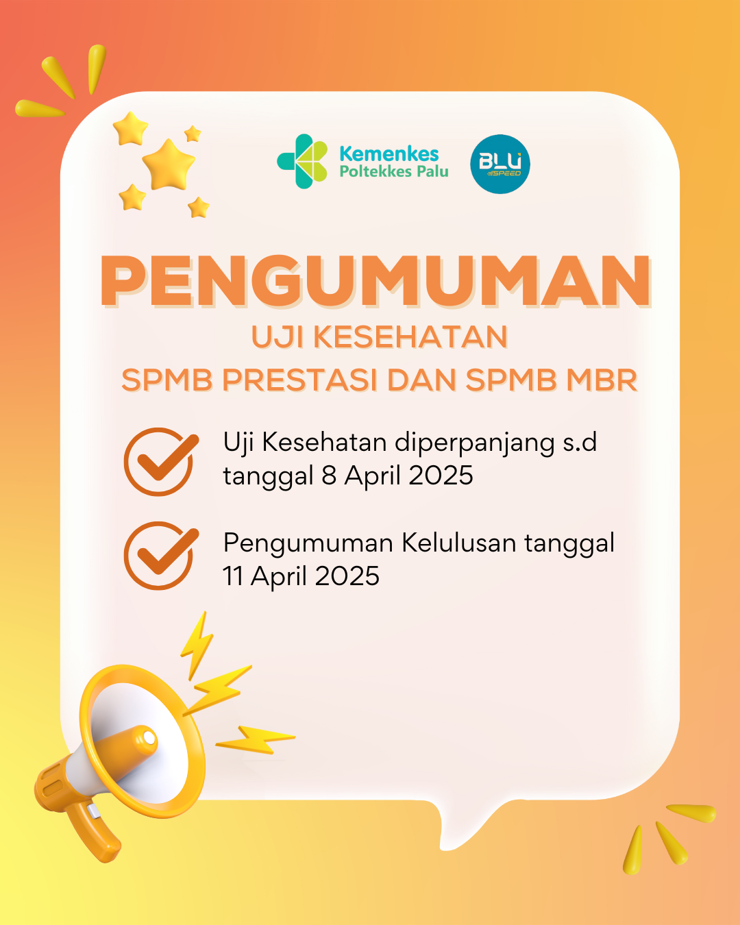 Poltekkes Kemenkes Palu merupakan salah satu perguruan tinggi negeri (PTN) yang menghasilkan tenaga kesehatan melalui proses yang dimulai dari seleksi calon mahasiswa atau yang dikenal dengan SPMB (Seleksi Penerimaan Mahasiswa Baru) yang dilaksanakan melalui rangkaian seleksi dan persyaratan yang harus dipenuhi oleh calon mahasiswa. Kegiatan seleksi dilakukan bukan hanya untuk mengukur kemampuan secara umum, tetapi lebih menitikberatkan pada penjaringan calon mahasiswa dengan kemampuan akademik yang baik.